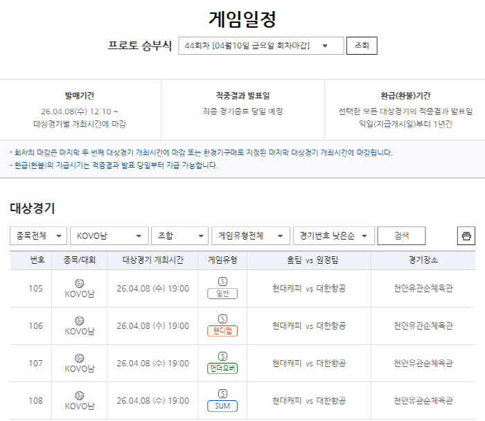 프로토 승부식 44회차 2025~2026 V리그 남자부 챔피언결정전 4차전 현대캐피탈(홈)-대한항공(원정)전에 대한 대상경기 정보 및 분석 내용은 베트맨 홈페이지 및 토토가이드 페이지 등을 통해 확인할 수 있다.