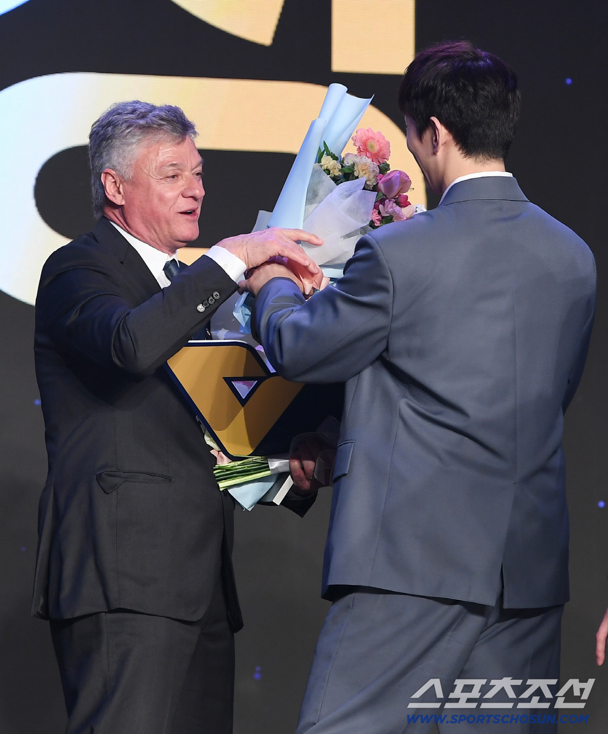 진에어 2025-2026 V리그 시상식이 13일 오후 서울 광진구 비스타워커힐서울에서 열렸다. 감독상을 수상한 대한항공 헤난 달 조토 감독이 축하 꽃다발을 받고 있다. 정재근 기자 cjg@sportschosun.com/2026.4.13/